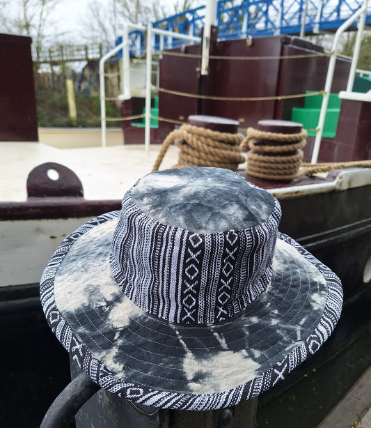 Unisex OUTBACK NEPALA MONO hat with a flexible, finished and lined brim. Beautiful pure Cotton + Gheri trim