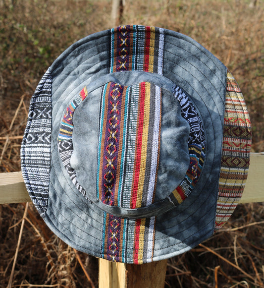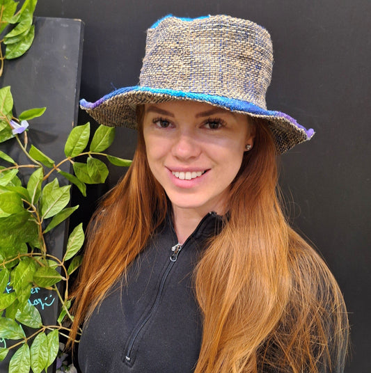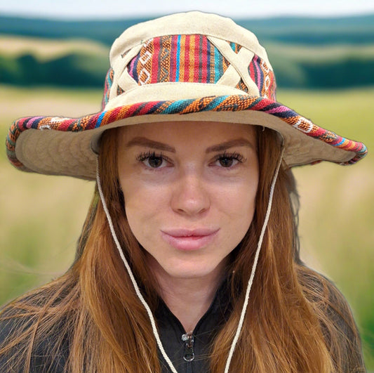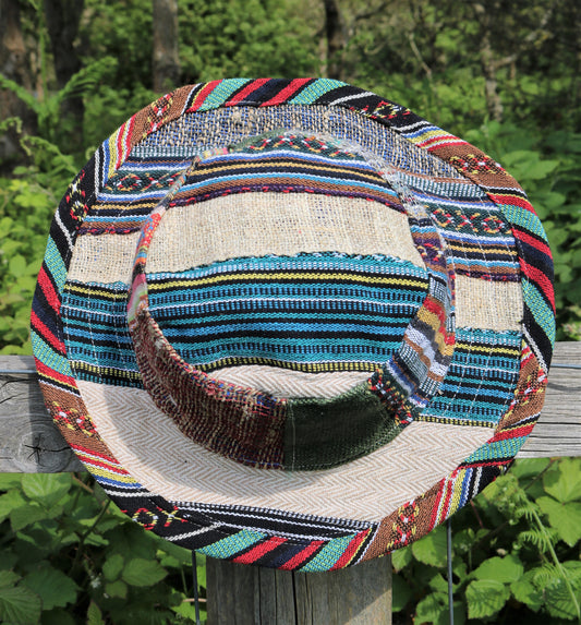 Beautiful Hemp & Cotton Unisex multicolour OUTBACK hat with a flexible, fringe brim