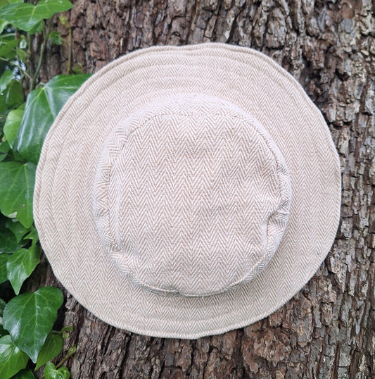 Unisex HERRINGBONE OUTBACK CREAM hat with a flexible, finished and lined brim. Beautiful pure Cotton and Fairtrade.