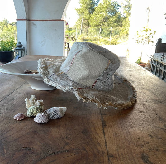 Beautiful Hemp & Cotton Unisex multicolour OUTBACK hat with a flexible, fringe brim