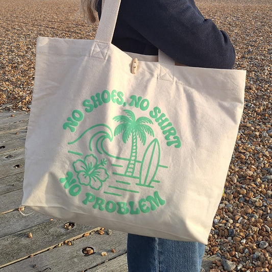 Large Cotton Beach Bag: NO SHOES NO SHIRT NO PROBLEM