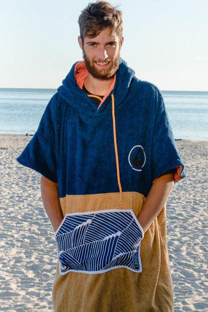 The large front pocket on our Flow poncho provides heaps of room both for storage and to bundle up after a cold dip, while the two-layer collared hood keeps in the warmth whatever the weather. As well as keeping the Flow poncho soft and lightweight, the cotton-bamboo blend is kind to both the planet and your skin.