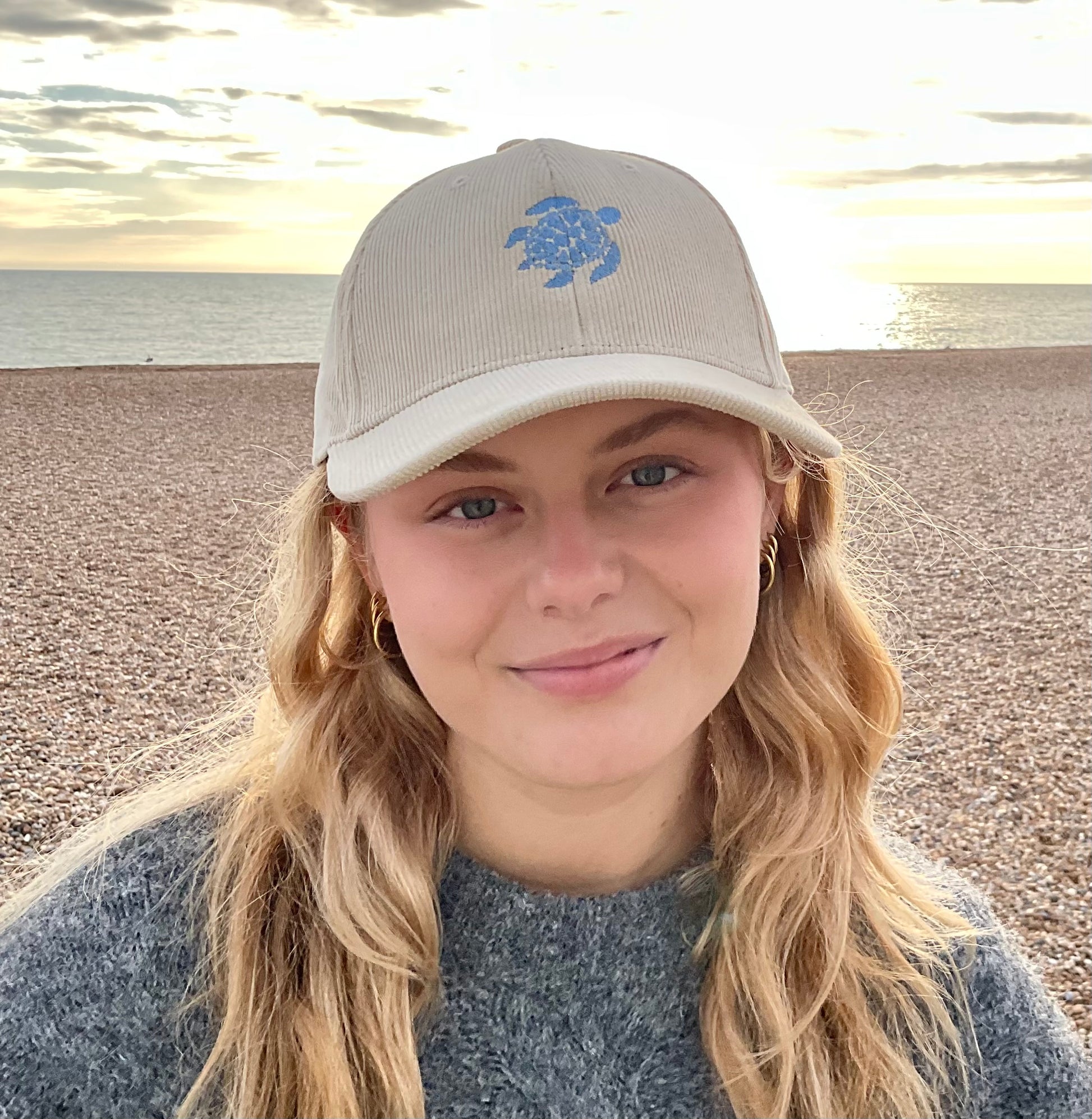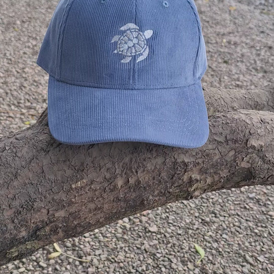 Our latest range of vintage Corduroy caps. They are designed as a vintage shaped Baseball cap with a soft, natural coloured body and peaks So, so soft and with an adjustable brass clip on the reverse - one size fits all and very eye-catching. The lovely turtle image is embroidered on the front in a complimentary matt thread. See our other awesome WAVE caps in this range.